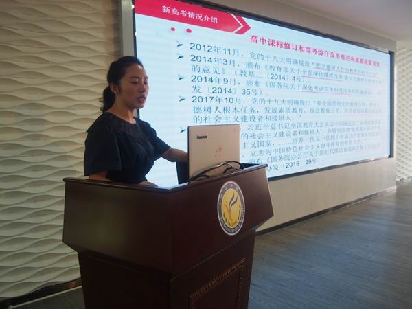 接着由区初中英语教研员杜晓曦老师解读了新学期区英语学科工作要点;再由区高中英语教研员许莎莎老师分析了新高考背景下的英语教学,许老师提出,要提高学生听力能力,口语能力及阅读能力,要遵循新课改理念,培养学生综合素质和能力,促进学生英语应用能力的全面发展。