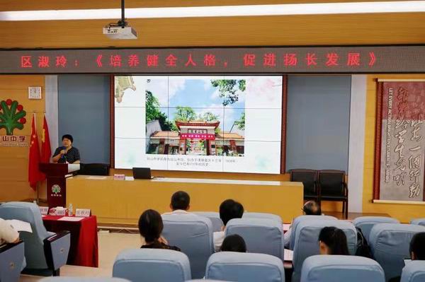 活动最后,容山中学区淑玲校长做了《立足两本文化,培养容山人格》的专题分享。区校长就容山中学“书院文化”建设多年的心路历程,跟大家分享了心理健康教育的经验与心得,其浸润式的文化育心与系统化的专业育心相结合的特色心育路径,可以为心理健康教育提供很好的借鉴。