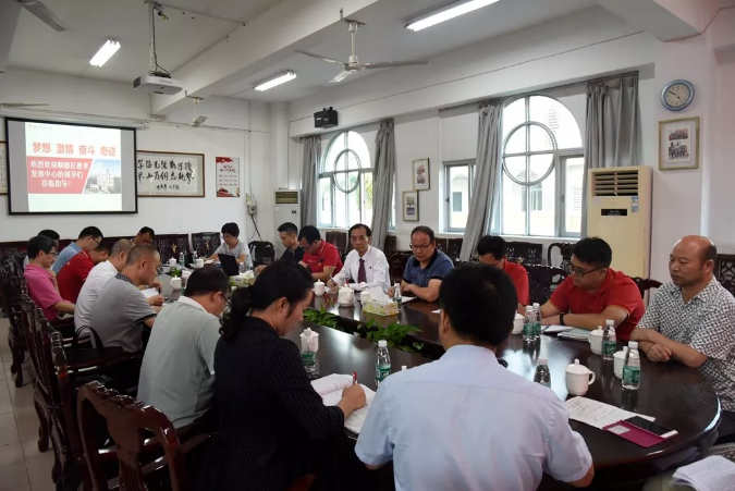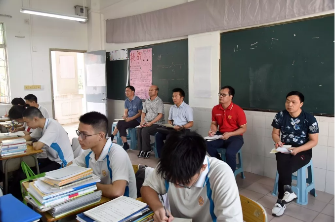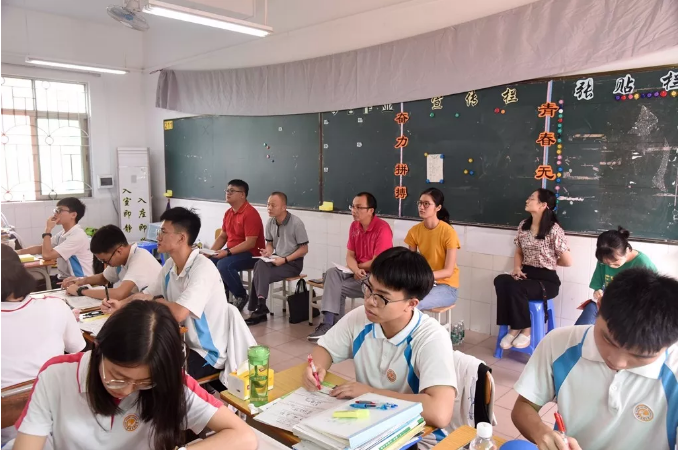 2019年10月24日下午,顺德区教育发展中心教研室主任、历史学科教研员余逸带领化学学科教研员潘红老师、地理学科教研员吴俊和老师、数学学科教研员王常斌老师、生物学科教研员唐创强老师、政治学科教研员薛国雄老师、英语学科教研员许莎莎老师、语文学科教研员谢植宣老师一行8人,对顺德华侨中学教学和高三备考工作进行了全方位的视导检查。顺德华侨中学吴剑平校长、党总支罗来纲副书记、教学科研处潘锦江主任及学校相关学科科长和备课组长等全程陪同。