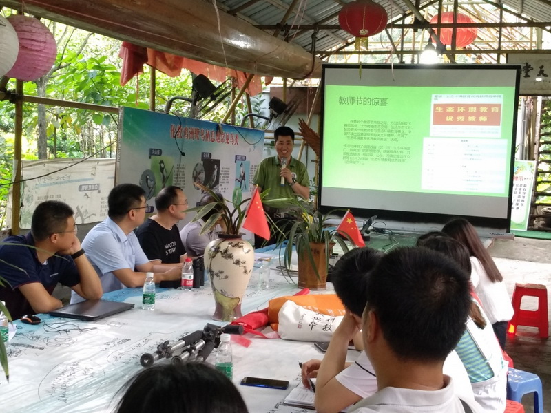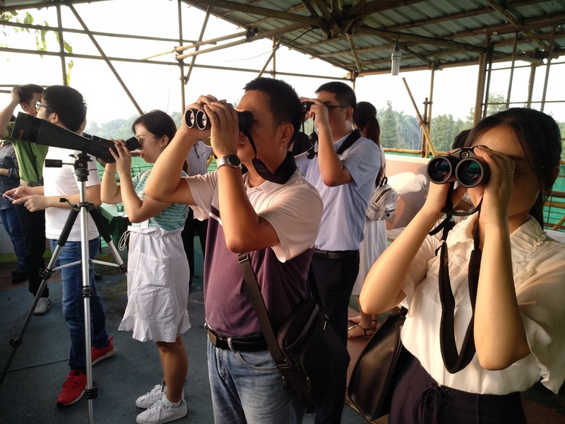 活动由专委会副秘书长陈章胜主持,广东省生态环境教育优秀教师、广州阳光鸟会会长卜标作了《观鸟,我的最爱》主旨讲座,卜老师结合自己成长为“博鸟”的经历向参训教师讲授了观鸟的意义、观鸟活动开展、观鸟与学科课程的整合等内容,希望通过提高教师的观鸟素养和技能,带动更多学生甚至更多家庭爱鸟护鸟。接下来的分享环节,由我区观鸟活动骨干教师:广东顺德德胜学校夏钦丽和许杰、大良实验小学陈灏文、顺峰中学李仕铭分别以“观鸟:让心灵飞翔”、“‘观'爱鸟类,体验自然之美”、“观鸟社团建设”为主题分享了本校在开展观鸟活动中的实践做法和成果心得。最后,全体学员登上观鸟台现场观鸟,学习和掌握观鸟的相关知识和技能,亲身感受观鸟的乐趣。