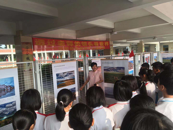 开幕式上,司徒葵东副校长指出此次摄影展的作品是她从教30年间旅游拍下的祖国美丽风光和景物,旨在激发学生爱国之情和报效祖国之志,同时为学生思考世界、创造世界打开一扇梦想之门。