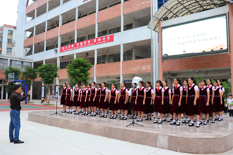 之后,由文华中学合唱队领唱《育美之歌》,操场上空响起了优美的文化旋律。在全场学生齐呼:“争做身体健美,心灵纯美,行为修美,求学笃美,与人和美,为事慧美的‘六美学子’!”的琅琅口号声中,本次集团日活动圆满结束。