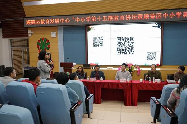 最后,由顺德区美术教研员王育群老师主持了艺术教育沙龙研讨,杨少弟、陈笔锐等几位优秀美术老师现场为老师们解疑答惑,分享了自己的教育智慧。