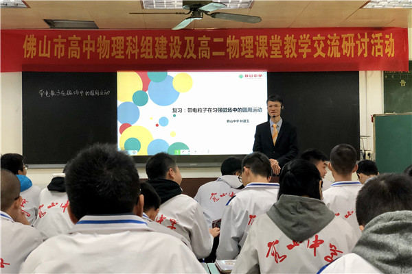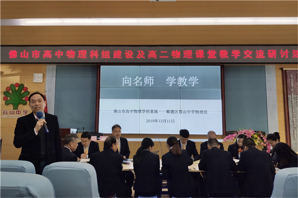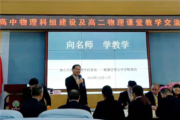 为更好地落实“立德树人”的根本任务,主动适应我国教育教学及高考改革的新趋势,实现新课标教学目标在课堂教学中的落地,切实提升学生的核心素养,2019年12月11日,佛山市高中物理科组建设及高二物理课堂教学交流研讨活动于我校隆重举行。佛山市教育局教研室朱建平主任、云浮市教育局教研室黄国颖主任、广东教育出版社朱梦华编辑以及佛山市、云浮市各校物理学科教师200多人参加了本次活动。