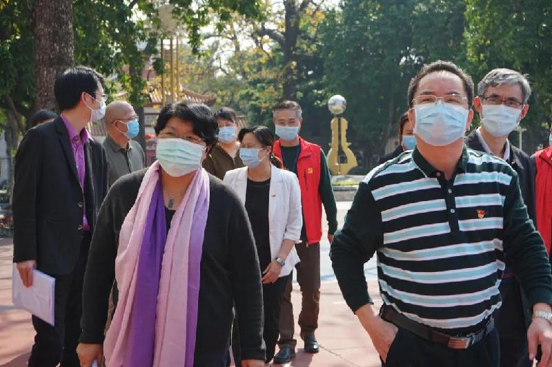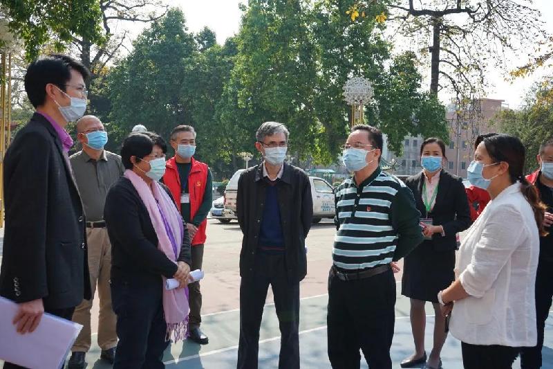 顺德区副区长、容桂街道党工委书记刘国兴(右3)等领导到容山中学检查疫情防控工作