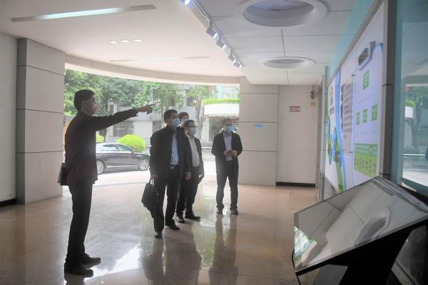 彭聪恩区长(左一)视察环境,关心教师发展中心建设等工作