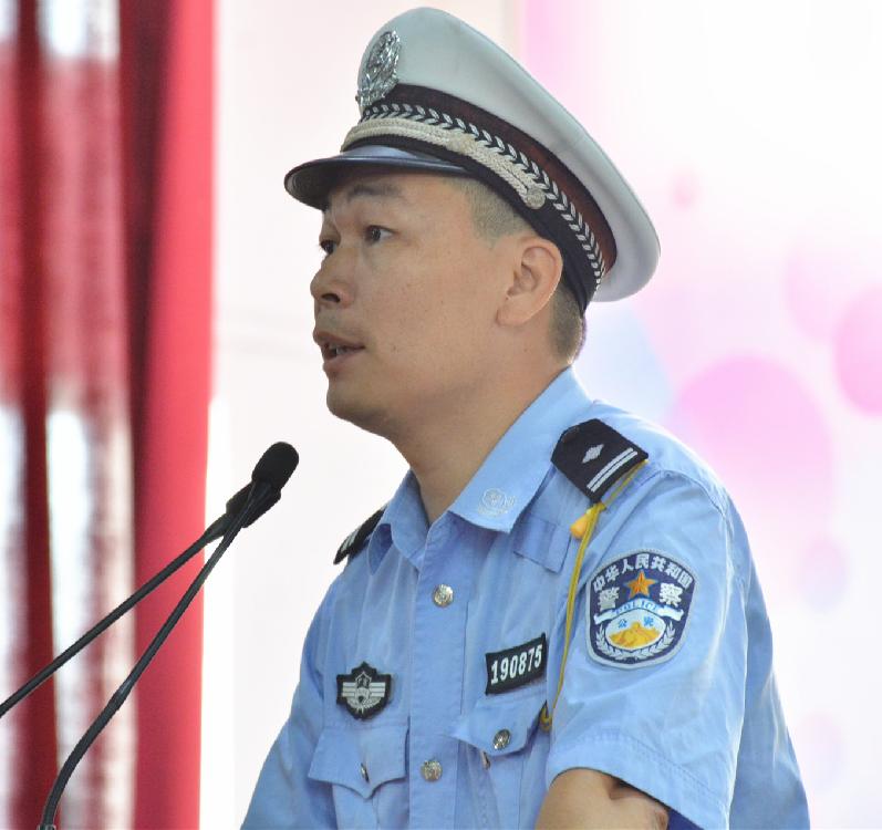 散学礼第一项议程:均安法制宣传员伍诗挺警官做法制安全讲座。
