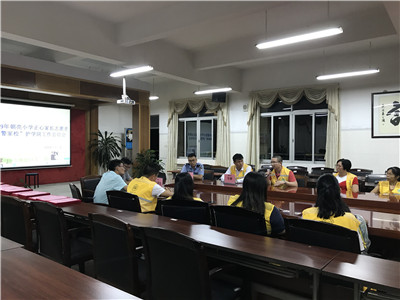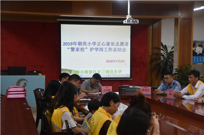 7月2日晚上7:40,大雨初晴,尽管道路积水潮湿,但丝毫浇灭不了我校“警家校”护学岗家长志愿者们的热情,家长们纷纷集中到学校三楼会议室参加本学期朝亮小学“警家校”护学岗家长志愿者总结会,会议由张湛浩主任主持。