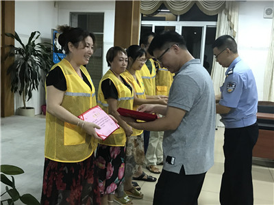 范校长和林警官为志愿者颁发荣誉证书