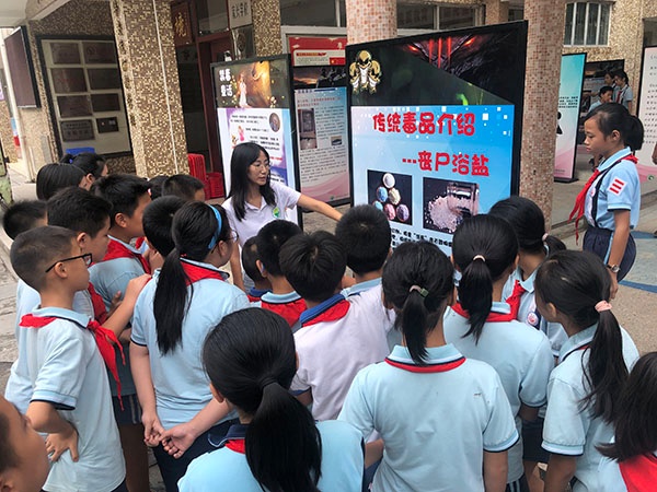 活动通过禁毒挂图宣传展示,宣传毒品的有关知识及国家有关禁毒、禁烟的法律法规。以具体实例说明感染后的副作用,毒品、 吸烟不仅危害社会、危害个人和他人健康,还会毁灭家庭。 因此加强对队员禁毒、禁烟知识的宣传教育尤为重要,用实实在在的案例教育师生们如何树立正确的人生观、 价值观和法制观, 得到了师生们的欢迎和认可。活动中,禁毒社工用毒品的图片展示向队员讲解了近期在网络、淘宝上出现的毒品,让队员了解毒品种类、危害、易存在的场所及外在特征,并鼓励队员在日常生活中主动积累禁毒知识,强化自身拒毒意识,以此更好防范毒品的变化多端。