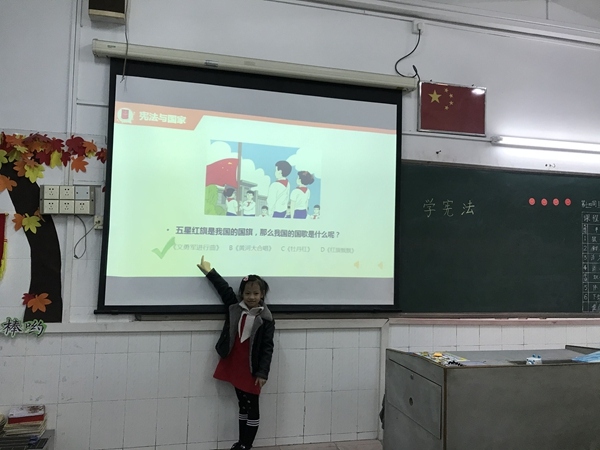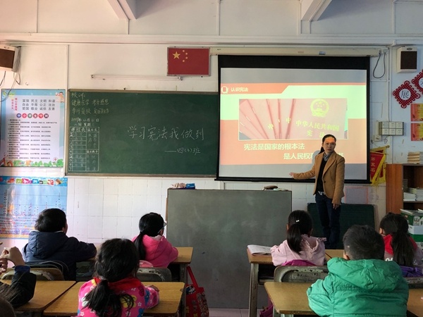 据悉,此次活动的开展是为深入贯彻落实党的十九大提出的依法治国的基本方略,大力弘扬宪法精神,积极营造学法、知法、守法、尊法、信法、用法的良好氛围。在11月份,沙溪镇中心小学就拉开了“宪法在我心中”宣传教育活动的的序幕,各班积极响应,首先组织了全校同学完成了教育部全国青少年普法网宪法平台的 “宪法小卫士”的测试。其次学校利用升旗仪式的国旗下讲话,向全校师生发出了学习宪法、尊敬宪法的倡议。并充分利用德育课堂这个主阵地,各班举行了“守法自护 杜绝欺凌”的主题班会,各班主任利用生动的课件以及生动的案例告诫学生宪法就在身边,要做到知法守法,远离犯罪,并通过交流、辩论等丰富多彩的形式去引导学生提高了法律意识,弘扬法治精神,坚定不移做遵纪守法的好公民。