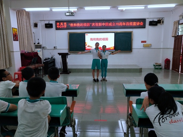 沙溪镇中心小学开展“‘我和我的祖国’——庆祝新中国成立70周年”百姓宣讲进校园活动发布时间:2019-07-04 13:19 信息来源:本网站 浏览次数:142