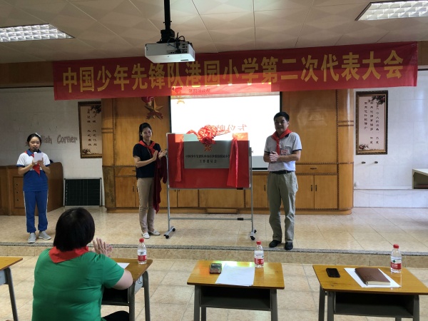 6月17日下午,阳光明媚,港园小学的少先队员们格外兴奋,因为中国少年先锋队中山市沙溪镇港园小学大队第二次代表大会暨少工委成立仪式在电教室正式举行。沙溪镇少工委总辅导员阮秀迎、港园村关工委主任黄丽端、港园小学党支部书记刘奥鹏、教导主任胡绮红、办公室主任李嘉政、辅导员彭思劬以及中队辅导员代表、各中队少先队员代表等参加了会议。