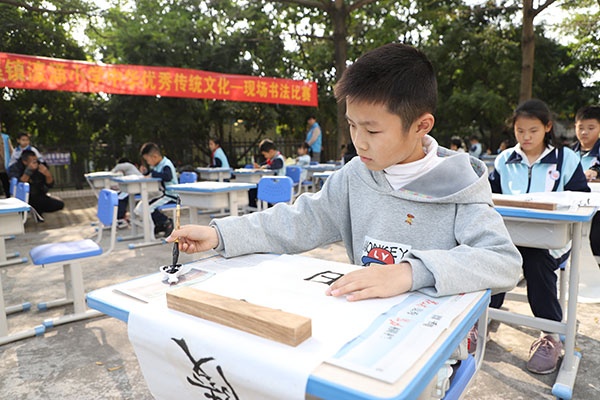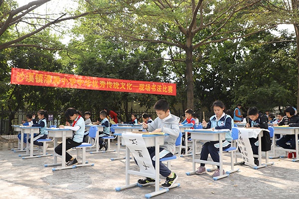 纸墨笔砚,传承经典文化;横竖撇捺,品读墨香诗韵。沙溪镇濠涌小学在中山市重点科研课题《中华优秀传统文化校本课程开发与实践研究》的引领下,传承和弘扬优秀的民族传统文化,增强学生对祖国汉字文化的了解,提高学生的书写质量、书写兴趣。2019年12月27日下午,濠涌小学举行了“中华优秀传统文化之现场书法比赛”活动。