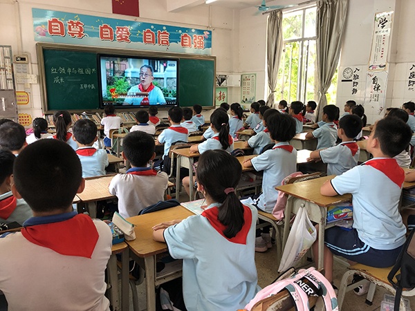 下午,各中队开展少先队建队日主题活动。在活动中,各中队辅导员首先带领全体少先队员重温入队时刻;分别从入队目的、队旗、队徽、红领巾的来历、队礼、队委标志、队歌、呼号、入队誓词等方面进行学习,增强了队员们对少先队知识的认识与理解和对红领巾的崇敬感、使命感。全体队员收看了《红领巾与祖国共成长——南粤红领巾献礼少先队建队70周年节目》。随后,各中队开展“红领巾与祖国共成长分享会”。让队员们分享参加“红领巾与祖国共成长”的成果和收获,说一说祖国建设新成就, 谈一谈身边生活新变化, 晒一晒参加少先队活动带来的成长和进步, 明确下一步打算和目标, 许心愿、立志向, 从我出发, 争做新时代的好队员。