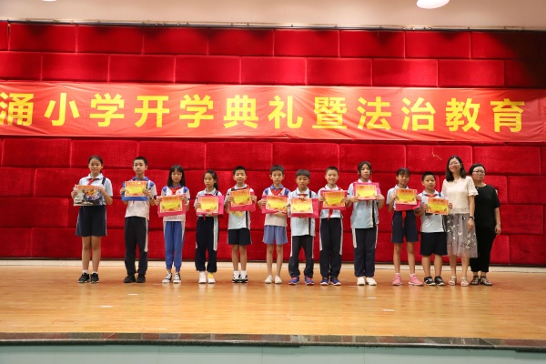上午8点30分,濠涌小学于学校礼堂举行了开学典礼暨法制教育讲座,全体师生参加了典礼,出席活动的还有沙溪镇驻村民警梁炳康警官、濠涌村村干部方焯培先生。开学典礼伊始,全体师生进行了庄严的升国旗仪式和国旗下讲话活动。在嘹亮的国歌声中,同学们的爱国之情油然而生。活动第二个环节,梁炳权警官为同学们献上了一节生动有趣的法制教育课。梁警官从学会遵纪守法、学会自我保护和注意校园安全等各方面入手,无微不至地教育了同学们日常学习生活中涉及安全的方方面面,让同学们获益良多。接下来,由辜鸿雁校长、刘敏妍主任和雷艳主任为上学期末参加中山市五年级期末统考的“方秉权暨甘爱玲奖学金”获得者颁发了奖学金及获奖证书,同时表彰了五年级学习标兵。旅美华侨方秉权先生、甘爱玲女士对家乡教育的支持不遗余力,获得了濠涌小学全体师生的爱戴。最后,辜鸿雁校长对全校同学进行了爱国主义教育,以《开学第一课》“五星红旗我为你骄傲、我为你自豪”的爱国情怀为契机,向同学们发出了发人深省的爱国三问:“你是中国人吗?你爱中国吗?你愿意中国好吗?”同学们掷地有声地回答把爱国主义教育推向高潮。辜校长的发言鼓舞了全校师生,同学们对此报以热烈的掌声。