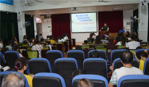 参观校园结束后,幼儿园的师、生、家长们对学校有了一个初步的感知。接着再次回到康乐小学汇报厅,由康乐小学吴伟标校长通过视频、照片、课件等方式介绍学校环境、学习条件、办学理念、每日常规和学校主题活动等,加深对小学的认知。会议开始,康乐小学吴伟标校长以平和、聊天的方式打开话题,拉近学校与幼儿园师、生、家长之间的距离,同时让他们简略地了解到幼儿园生活与小学生活的主要差别,提前作好相应的准备工作。接着分别介绍学校的办学条件、教师队伍、常规活动和核心价值等内容。在介绍学校基本理念过程中,吴校长先结合目前学校所开展的常规活动如大型师生文艺晚会剪影、嘉年华剪影活动、大课间展示活动等,用视频和照片等实际生动素材为主,让家长了解学校办学宗旨和育人目标,了解学生在学校的生活和各阶段的关键能力和关键习惯的培养。许多教育观点和办学理念与家长们产生了共鸣,场内时而掌声雷动。