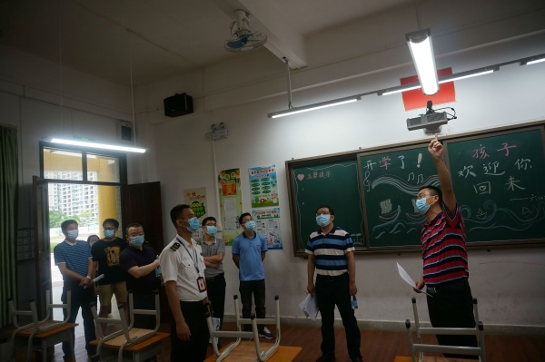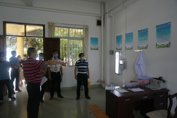 初夏,三角梅盛绽,返校复学在即。 5月9日上午,由沙溪镇教育事务指导中心主任汪峰带队,镇疾控中心阮铿结、市场监管分局刘水添、教育事务指导中心张乖祥、杨海荣、林子田组成的复学返校验收组到沙溪镇虎逊小学督导检查复学前各项准备工作,学校兼职卫健副校长李上有站长、黄金奇校长和各部门负责人陪同检查。验收组对学校的晨检设施、组织领导、制度建设、网格管理、应急措施、心理健康教育、教室布置、物资保障和环境卫生等作了细致的检查,以确保学校在具备疫情防控条件,师生和校园公共安全有保障的前提下开展复学。