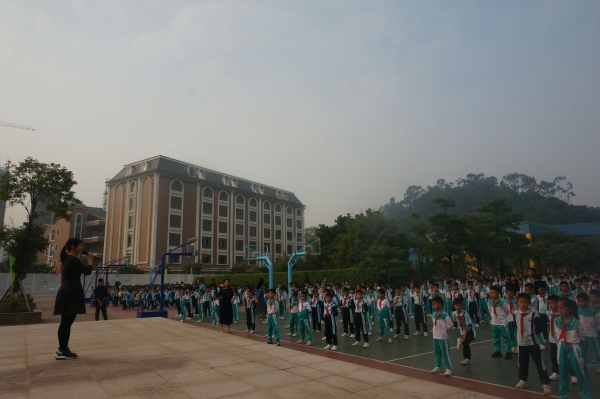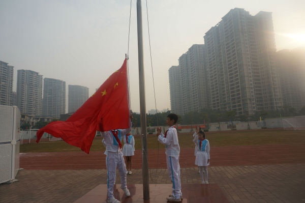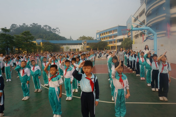 11月25日上午,伴随着清晨的第一缕阳光,虎逊小学全体队员集中在学校篮球广场进行每周一的升旗仪式。仪式开始,全体师生肃立。五星红旗伴随着嘹亮的国歌声冉冉升起,在学校田径场的上空迎风飘扬。