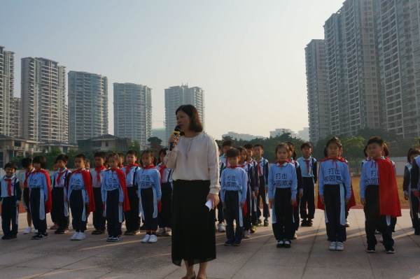 11月18上午 8:00,迎着晨曦,全体师生聚集在学校篮球场开展周一升旗活动。伴随着庄严的国歌声,鲜艳夺目的五星红旗冉冉升起,全体教师肃立,少先队员行队礼,齐唱国歌,嘹亮的歌声表达着大家对祖国的热爱与骄傲。接着二(1)班中队辅导员缪卓珍老师进行主题为“远离欺凌 友善待人”的国旗下讲话活动。