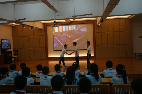 为积极响应中山市教研室关于开展中小学“爱国”德育主题班(队团)课教学活动的号召,中山市沙溪镇虎逊小学四(2)中队于2019年10月24日下午开展了以“社会主义核心价值观”之“爱国”——学榜样,爱祖国为主题的队课。在何溥彦辅导员的指导下,四(2)中队的队员们分小组筹划了这次的中队活动。当天下午,黄金奇校长还召集全校的青年辅导员来参加了此次四(2)中队的队活动。