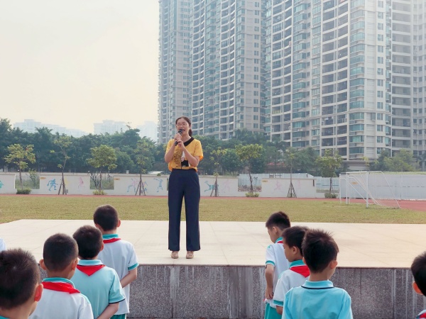 四(4)班中队辅导员黄新红老师上台发言。黄老师先是跟同学们讲述了一个追求自由不受约束的河水最终导致自己干涸了的《河水与河岸》故事,深入浅出地告诉同学们要明白“无拘无束的、绝对的自由是不存在的”道理。过度的自由只会给他人和自己带来伤害。比如,公路上,只要有人不遵守交通规则,别人就会无法正常通行,自己也会陷入困境。紧接着,黄老师再以“风筝失去细线就会摔得粉身碎骨”的比喻引出她的观点:希望同学们学习、成长也要遵守规矩。接着,黄老师列举了身边同学经常会出现一些不和谐的现象,如早上迟到、上课不专心听讲、乱扔纸屑、走廊上追逐打闹、吃零食等,用反面的例子,促使同学们反观自己违反规矩的行为会导致自己文明素质低下,成绩下降,甚至误入歧途,影响一生。最后,黄老师语重心长地向全体同学发起号召:从现在做起,从今天做起,做一个遵守纪律的小学生,培养良好的行为习惯,以崭新的姿态,面对生活,面对学习,做更好的自己!国旗下讲话到此结束,篮球场爆发一阵阵热烈的掌声。