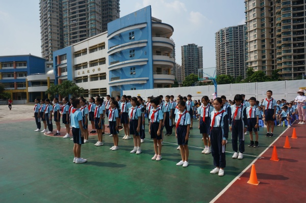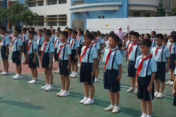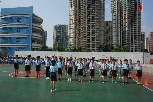 为了积极响应国家“阳光体育”运动精神,树立“健康第一”的意识,为了丰富学生的课余生活,增强团队精神和集体凝聚力,展现学生们积极向上的风貌,促进学生德智体全面发展,经研究制定,沙溪镇虎逊小学在学校篮球场举行2019年开学初队列队形比赛。