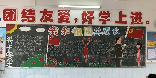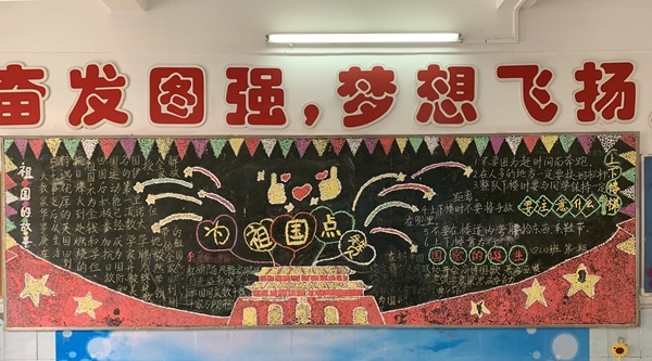圣狮小学各班同学以“我和祖国共成长”为主题,通过黑板报形式表达自己对祖国生日的喜悦之表。学生们巧用自己的知识和设计天赋,通过画笔为祖国献上一幅幅美丽的画卷。学生用手中的画笔,描绘出祖国的变迁,激励学生为实现中国梦而不断进步努力。