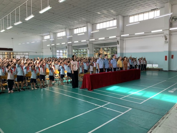 散学礼分为四部分进行,首先沙溪交警大队张正开叔叔给同学们做一个假期交通安全讲座。通过学习与暑假相关的安全知识,孩子们牢记了安全要点与要求,牢固树立“安全第一、预防为主”的理念。