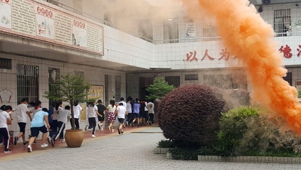 上午8时,随着演练信号响起消防应急疏散演练拉开了帷幕,听到报警声响各位领导、各位老师立即到达指定地点,指导学生快速疏散,各班班主任带领学生弯着腰,用毛巾捂住口鼻,沿着学校指定楼梯通道快速撤离,到达校园内安全地带,随即各班主任清点人数,并层层向上汇报。在全校师生共同的努力下,这次演练活动在一分半钟时间内完成,最后,黄校长对这次演练进行了总结。