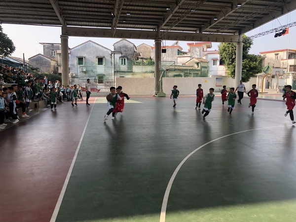 比赛中,各班同学身着统一篮球服,个个精神抖擞,那股运动劲和运动范深深地感染着大家。运动员们运球、投篮、上篮等篮球技术扎实,奋力的拼搏,挥洒着汗水。尤其是篮球队抗赛,队员们在场上努力地追、抢篮球,发挥他们娴熟的运球传球技术,拼劲全力去投篮、得分。场边的老师和同学们则不停地呐喊,不停的助威。只见篮球一会儿在这边,一会到了那边,人人都不顾劳累,顽强拼搏,啦啦队扯着嗓子大喊“加油,加油……”。孩子们展现了篮球之美,用精彩的表现让篮球运动熠熠生辉。为期一周的篮球赛涌现出了许多表现优异的篮球健儿。