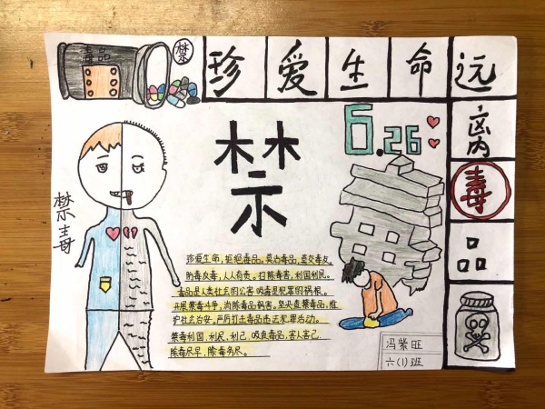 通过线上禁毒主题班会课,同学们对禁毒知识有了很大的提高,孩子们纷纷表示:一定远离毒品,做阳光少年。很多同学在家通过搜集毒品资料,撰写观后感和自主制作了“珍爱生命,远离毒品”手抄报、禁毒小画册、禁毒小书签等活动。