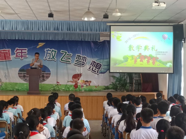 走过了播撒汗水和希望的春,迎来了热情似火的夏,2018学年第二学期已接近尾声。7月5日下午,象角小学师生齐聚学校礼堂举行本学期的散学典礼。