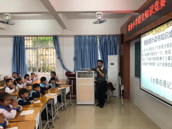 为进一步推进书香校园建设,更好地促进语文教学,检查学生的语文基础知识,提高学生语文素养水平,激发学生课外阅读兴趣,培养学生爱读书读好书的习惯。4月1号下午,象角小学举行了“一、二年级语文知识竞赛”专场活动。