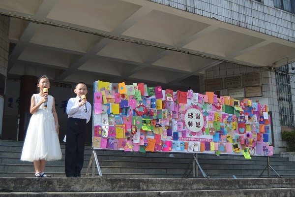 衣带渐宽终不悔,为伊消得人憔悴。这句诗是对教师精神的最好诠释,一首大合唱《每当我走过老师窗前》表达了对老师的感恩之情,活动中还以粘贴贺卡的形式,向老师献祝福,这个环节将活动现场的氛围推到高潮。