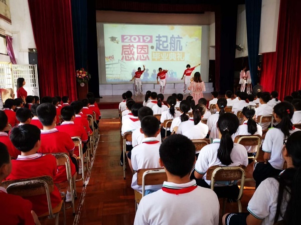7月6日,夏日的清风弥漫着浓浓的离别之情,中山市申明亭学校六年级的师生在学校礼堂举行了毕业典礼。