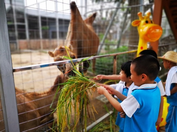 40分钟的车程,大家终于抵达目的地——三角迪茵湖生态农庄。翠绿的草地,清澈的蓝天,洁白的云朵,孩子们全身心投入到大自然的怀抱中。在碧波荡漾的湖中乘船放歌;喂养动物环节让孩子们与山羊、骆驼、骏马亲密接触;亲手种下一种小苗,为果树捉虫,体验农民伯伯耕种的辛劳,感同身受何为“谁知盘中餐,粒粒皆辛苦”;品味农庄特色蔬果,体味收获的甘甜;还有刺激好玩的滑草和水上项目,让孩子们忘却恐惧,在游戏中成长,变得坚强;在豪迈的音乐声中观看民族表演和蒙古族同胞的马上雄姿,感受祖国丰富多彩的民族文化,激发孩子们的爱国情怀。