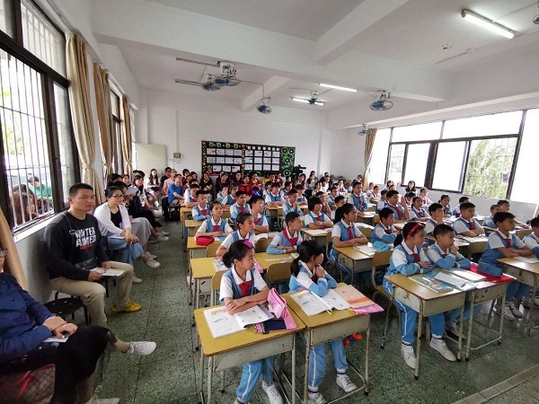 为了进一步促进镇小学数学教师,尤其是一线教师如何运用《中山市小学数学教学要义》,准确解读教材、把握好教学内容、目标及重难点,设计有效的教学流程,构建“高效课堂”,促进教师专业化成长,促进教育教学质量的提升和学生数学素养的发展。3月22日上午,沙溪隆都片区的几所学校在中山市申明亭学校开展了《中山市小学数学教学要义》运用与应用能力提升研讨的数学联合教研活动。沙溪镇教育事务指导中心杨海荣老师、沙溪镇数学名师坊及各个学校的三四年级数学教师参加了本次活动。
