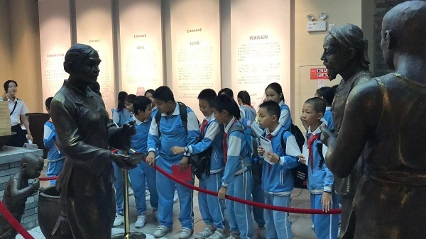 首站前往参观厨邦酱油博物馆。孩子们排着整齐的队伍参观了一楼的售卖柜台、二楼的百酱园、三楼的工艺器具展厅。不同的雕塑还原出制作、售卖的场景,犁、耙、簸箕、风斗、灶台、抽油桶等,让孩子们在欣赏完古香古色的器具中了解到酱油工艺的源远流长。接着观看了厨邦酱油文化科教宣传片、看到了在实验室认真工作研究员和大片的晒场。来到酱油生产线,偌大的生产区只有也只有三五个工作人员,了解到从洗瓶、装瓶、检验、包装,短短的几分钟时间一瓶瓶酱油就生产出来了。孩子们感叹科技的力量。