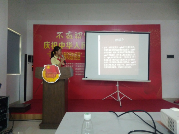 本次分享会,沙溪中学以及溪角中学都派了学生代表前来参加。分享会开始之前,沙溪镇团委书记方君健叔叔致辞。方书记用自身切实感受呼吁星空体育要珍惜学生时代生活,鼓励星空体育要多读书,特别是要多诵读经典书籍。接下来,分享会是在我校小学部学生代表诗朗诵表演“我和我的祖国”中徐徐拉开序幕。之后的分享活动,来自初中部三个学段的15位同学以饱满的激情、生动的语言以及借助图文并茂的幻灯片跟大家分享了对自己喜爱书籍的读书感悟、体会,表达了读书的无限乐趣。期中,来自801班的罗欣同学分享的《狼道》尤为吸引人,她声情并茂地向大家讲述了狼性文化的内容及特征,呼吁大家学习狼道精神;705班杨理强同学的表现也赢得了观众的阵阵掌声,他用自己特有的语言魅力以及丰富的肢体语言与大家分享了《老人与海》这个故事的简述以及读后的感悟;703班钟欣同学的《活着》以及901班曾雨欢同学的《少有人走的路》,这两位同学用自己独特的视角解读了这两本书的精彩部分。活动中,同学们有的娓娓道来,有的热情洋溢,所有的观众不时送上响亮的掌声,有奖问答环节更是把整场活动的气氛推到了高潮,这环节切实考验了同学们的文学素养。