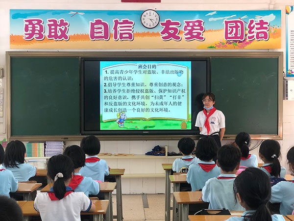 为了让少年儿童受到优秀文化滋养,大力促进政府、社会、学校、家庭协调一致携手保护未成年人健康成长,珍爱生命珍爱自己,抵制有害出版物和信息的侵染,提高安全意识,防止网络诈骗和欺凌事件的发生。2020年6月15日,沙溪镇濠涌小学少工委组织各中队开展以“扫黄打非进校园—书香校园.护苗.禁毒.绿书签活动”为主题的少先队活动,大力倡导绿色阅读、文明上网理念,引导少年儿童爱读书、读好书、善读书,自觉抵制非法出版物和毒品。