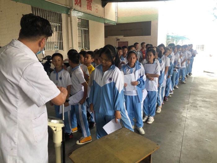为及时了解和准确掌握学生的健康状况和生长发育情况,保障学生的健康安全,根据中山市教育和体育局的统一要求,10月12到19日,神湾医院10几名医务人员来到神湾神舟学校对56个班级2700多名学生进行了体检健康检查。本次体检主要有以下项目:测量身高、体重、视力、内科、外科、口腔科、眼科、五官科。