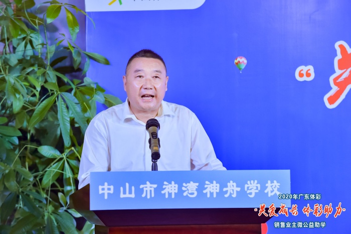 2020年10月29日下午,2020年广东体彩“关爱成长 体彩助力”销售业主微公益助学活动在神舟学校隆重举行。出席活动的领导嘉宾有广东省体育彩票中心任成阁副主任,中山市教育和体育局唐杰伟副局长,中山市体育彩票管理中心张文建主任、罗银花副主任,神湾镇宣传办庞莉莉副主任,神湾镇教育事务指导中心陈爱文专干,神舟学校熊江华校长以及广东体彩实体店34位销售业主代表。中山日报、南方日报、中山广播电视台等媒体参加报道。这次活动主要广东省体育彩票中心、中山市体育彩票管理中心联合中山实体店34名业主共同出资10万,资助学校54名家庭较困难学生本学期午餐费和交通费,以及向学校捐赠一批体育器材。