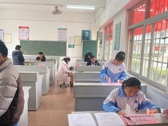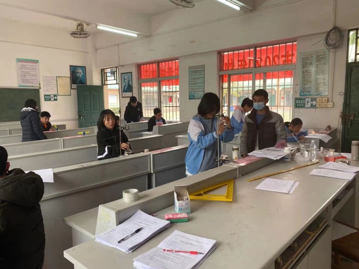 为准备此次物理实验考核,在实验操作考核前一个月,教导主任韦绍祖对物理实验操作考核的物理教师,考务员专门召开会议,作出了工作步署。理综组组长范修益老师组织全校物理教师,从九道实验题中选出六道实验操作考核题,讨论并制定了实验操作考核的具体方案。考核前,积极训练各班学生熟悉实验考核流程,规范学生考试纪律;认真布置实验操作考场,在考场悬挂横幅,黑板上书写“实验操作考核须知”;实验台贴“实验标签”(实验序号、名称),便于学生对号入座。为让考生准确掌握时间,每个考室还准备一个钟表计时。