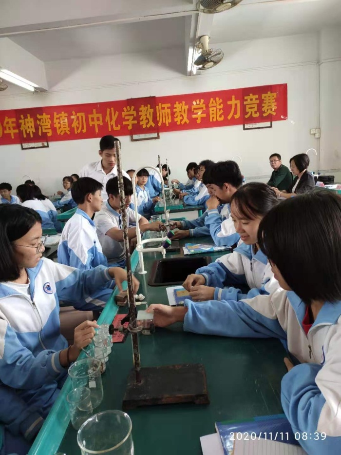 根据中山市《关于举办中山市第四届初中化学教师教学能力大赛的通知》文件精神,为了进一步提高神湾镇初中化学教师的教学业务水平和综合素养,培养骨干教师,促进神湾镇初中化学教学质量的稳步提升,2020年11月11日上午,神湾镇教育和体育事务中心在神舟学校举行了神湾镇初中化学教师教学能力选拔赛活动。参加本次赛课的教师有神湾中学的陈茜老师,神舟学校的王振杰老师,育才学校的陈文惠老师。本次赛课邀请了神湾镇教育和体育事务中心的吴惠欣、林应忠、神舟学校范修益、神湾中学的贺吉琴、育才学校的冯苍5位老师担任评委。