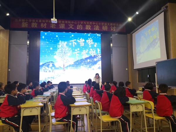本次的同课异构活动由神湾中心小学的邝雅燕老师和三乡光后中心小学小学的宾健华老师同上一年级语文的《雪地里的小画家》这一课。