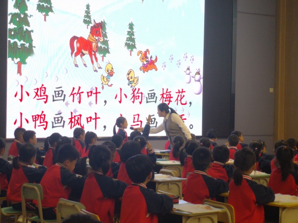 首先是课堂展示。宾老师巧妙地利用灵动的教学语言和丰富的肢体语言与学生交融在欢乐的课堂之中。让学生在轻松有趣的课堂游戏中朗读出小画家开心的心情。而邝老师则对一年级学生有声朗读切实可行的的方法指导,同时课堂中时刻不忘对学生进行识字方法和阅读方法的指导灌输。学生在邝老师的一步一步的引导下,理解了小画家为什么画的画不同,培养了学生提取信息的能力,以及在朗读中感受小画家的雪地里作画的乐趣。本课是一篇充满童趣的儿歌,两位老师都可以很好的把握文本特点,都充分调动了学生的主动性和积极性,课堂气氛活跃而轻松,做到了“同中求异,异中求同”,体现了教师良好的语文素养和扎实的教学基本功。