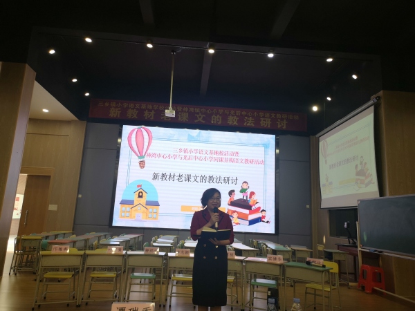 为了进一步加深对部编版教材的研究和更好地使用部编版教材,针对老课文新教材的教法研讨,2019年12月12日,神湾中心小学和三乡光后中心小学小学在光后中心小学小学百年讲堂举行了语文“同课异构”课堂教学的研讨活动,神湾中心小学的谭瑞香校长和三乡光后中心小学小学的龙朝晖校长出席了本次研讨活动。