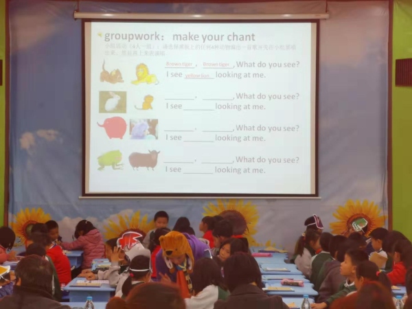 本次同课异构教研活动,由我校方珊丹老师和育才学校的黄赞斐老师承担授课任务。授课内容是Bill Martin Jr/Eric Carle 的绘本 《Brown Bear, Brown Bear, What do you see ?》。第一节课由神湾中心小学的方珊丹老师执教,上课班级是四年级2班。方老师借助“变魔术”游戏、动物头套等创设真实情景,让学生快速且快乐地学习绘本中出现的颜色和动物单词,接着通过拍唱的方式,将整个绘本的内容娓娓道来。第二节课由育才学校的黄赞斐老师执教,上课班级是四年级3班。黄老师借助“识动物”游戏以及丰富的肢体语言,吸引学生兴趣,提高学生的课堂参与度。两位老师课前准备充分,课上激情饱满,为星空体育展示了两堂精彩的课例。