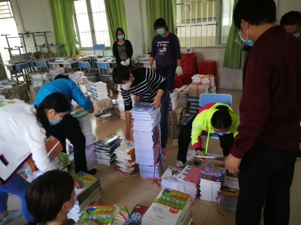 2月27下午4点30分,市教体局召开了关于3月2日开展线上教育的视频会议,并发放了相关文件。会后,教务处立即制定了“神湾中学学生教材发放方案”“致家长的一封信”,告知家长发放教材的方法,让家长选择教材的发放方式。晚上又召开了全体行政、级组长、科组长、班主任视频会议,安排教材发放工作。2月28日早上8点,在级组长邹佩睦、温婉宁、陈志松的带领下,三个年级的部分老师积极参加分发教材的工作,他们中午不休息,连续奋战,仅用一天的时间就把教材按家长的要求分发到学生的手中,为3月2日线上教学顺利开展奠定了基础,学校为这些老师们的无私奉献而钦佩,也感谢神湾邮政快递公司的鼎力相助。